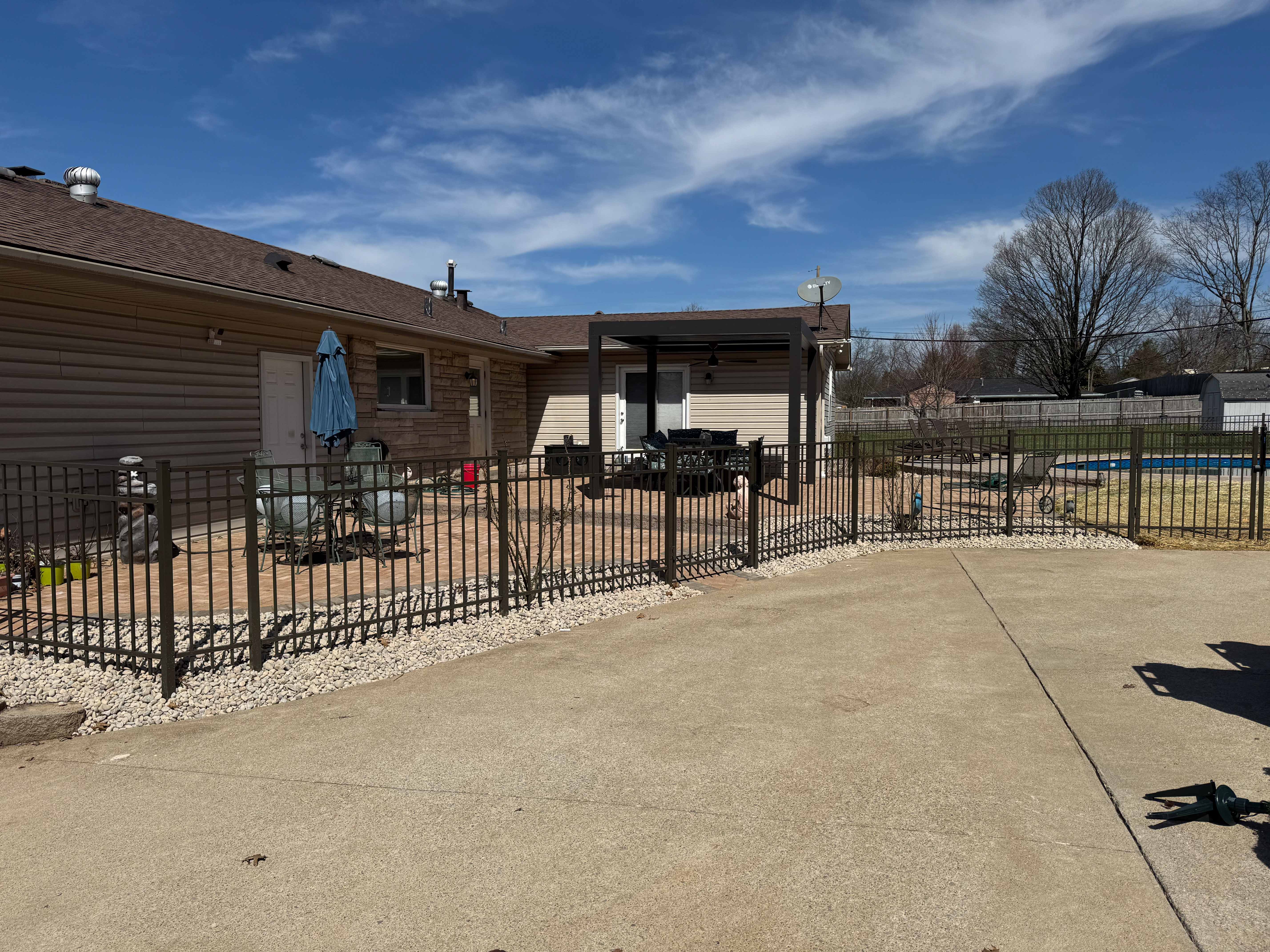 A full backyard upgrade featuring a fiberglass pool and custom louvered pergola, built for relaxation, entertainment, and everyday outdoor living.